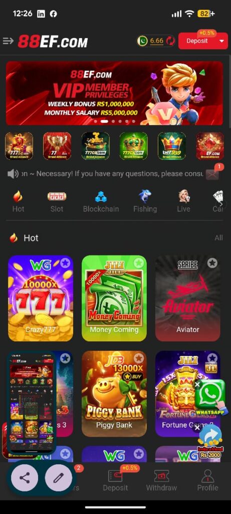 Players can securely log in using their phone number or email. The 88EF Game login ensures your account and personal data are protected, making it safe for all users in Pakistan.