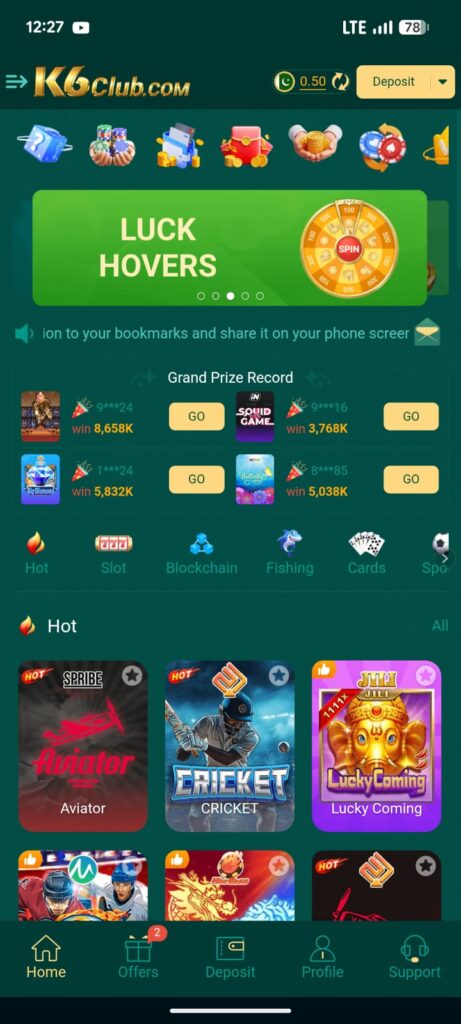 K6 Club provides customer support for users facing issues related to login, deposits, or withdrawals. While response times may vary, support is generally helpful and guides users through common problems. This support system adds another layer of trust.
